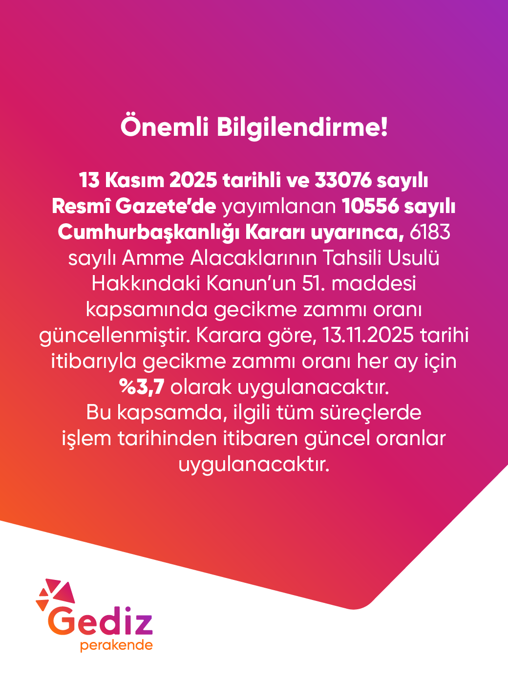 At Gediz Elektrik Perakende Satış A.Ş. (“Gediz” or the “Company”), we kindly bring the following to your attention under our liability to inform you to ensure that we can act in accordance with the Personal Data Protection Law No. 6698 (the “Law”) and the related regulations regarding the personal data we obtain from you as the data controller: